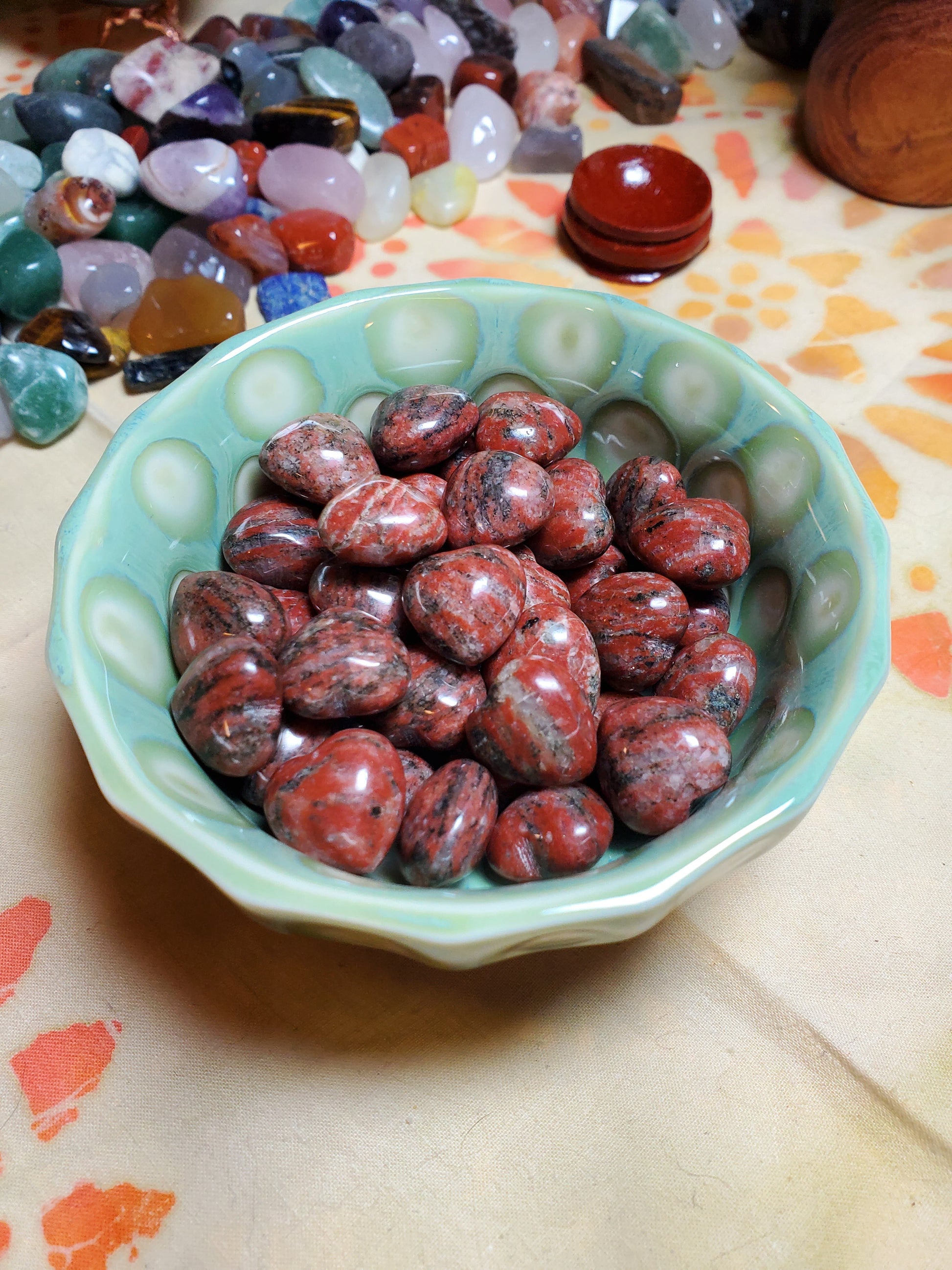 The hearts are amazing! African Bloodstone is said to provide protection from negative influences in the environment and the human bio field. It has long been associated with abundance in all things and is used by many to form part of a manifestation grid to attract an abundance of wealth, health and happiness. These hearts are an easy way to carry with you!Â