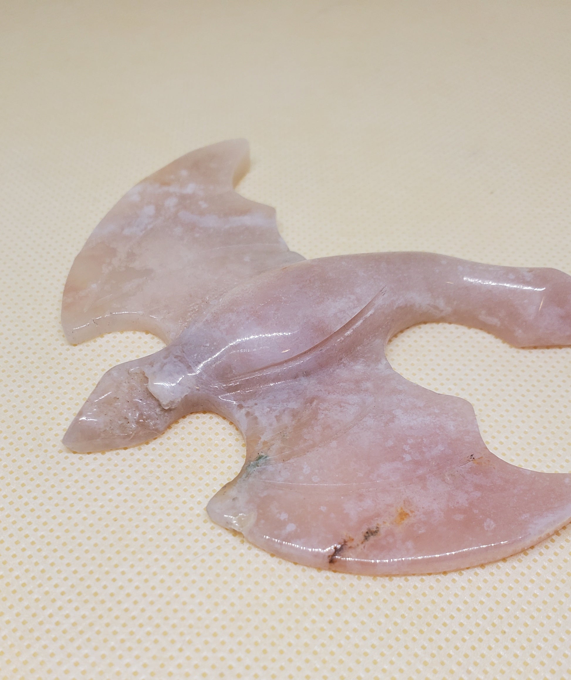 This pink amethyst dragon has druzy on it's head.  The wing span measures 3.7 inches.